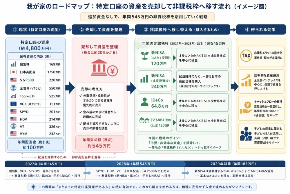 いわば、保有銘柄の整理(管理の簡素化)も兼ねて「不要・非効率な資産」を掃除して、一等地の「非課税枠(オルカン)」へ引っ越すイメージです。