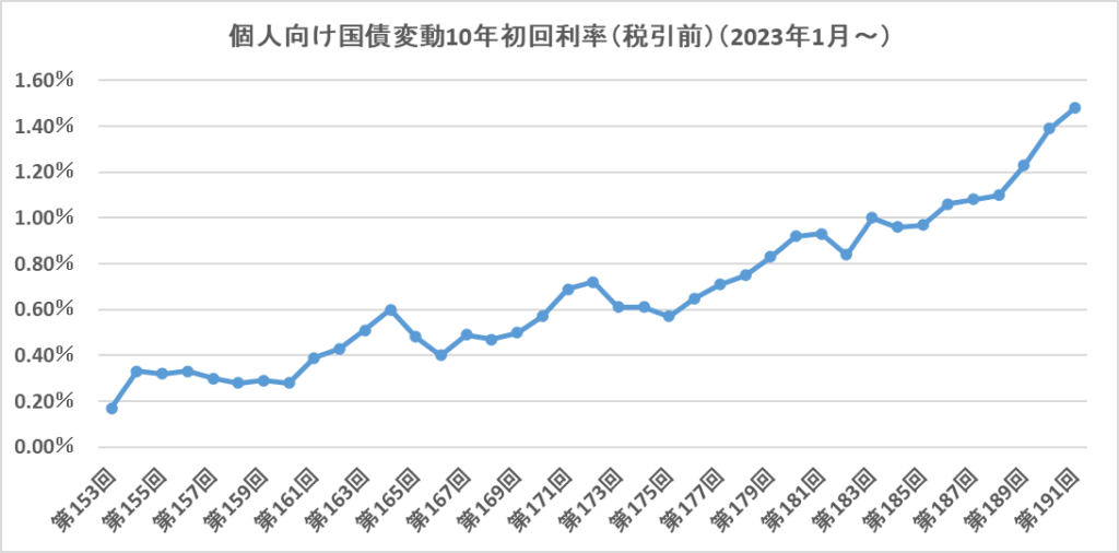 2023年1月(第153回債)からの1回目の金利の推移は以下のようになっています。