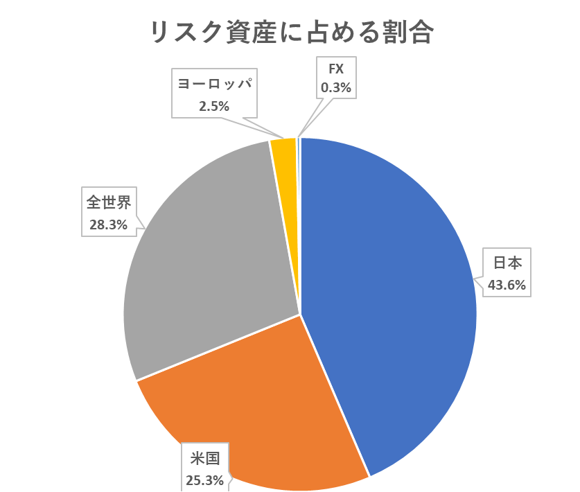 私の、現在のリスク資産に占める地域別の割合は以下のようになっています。
